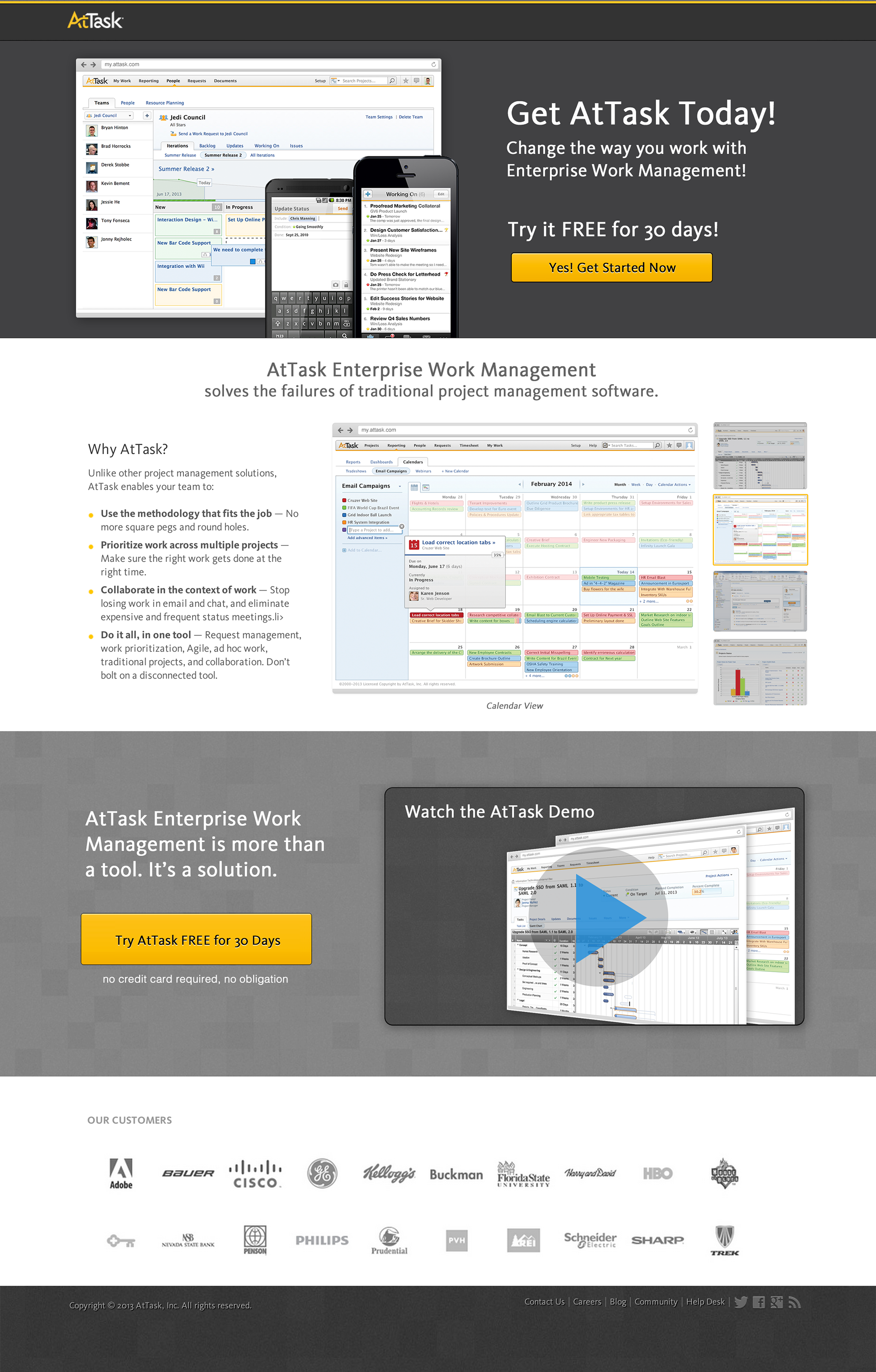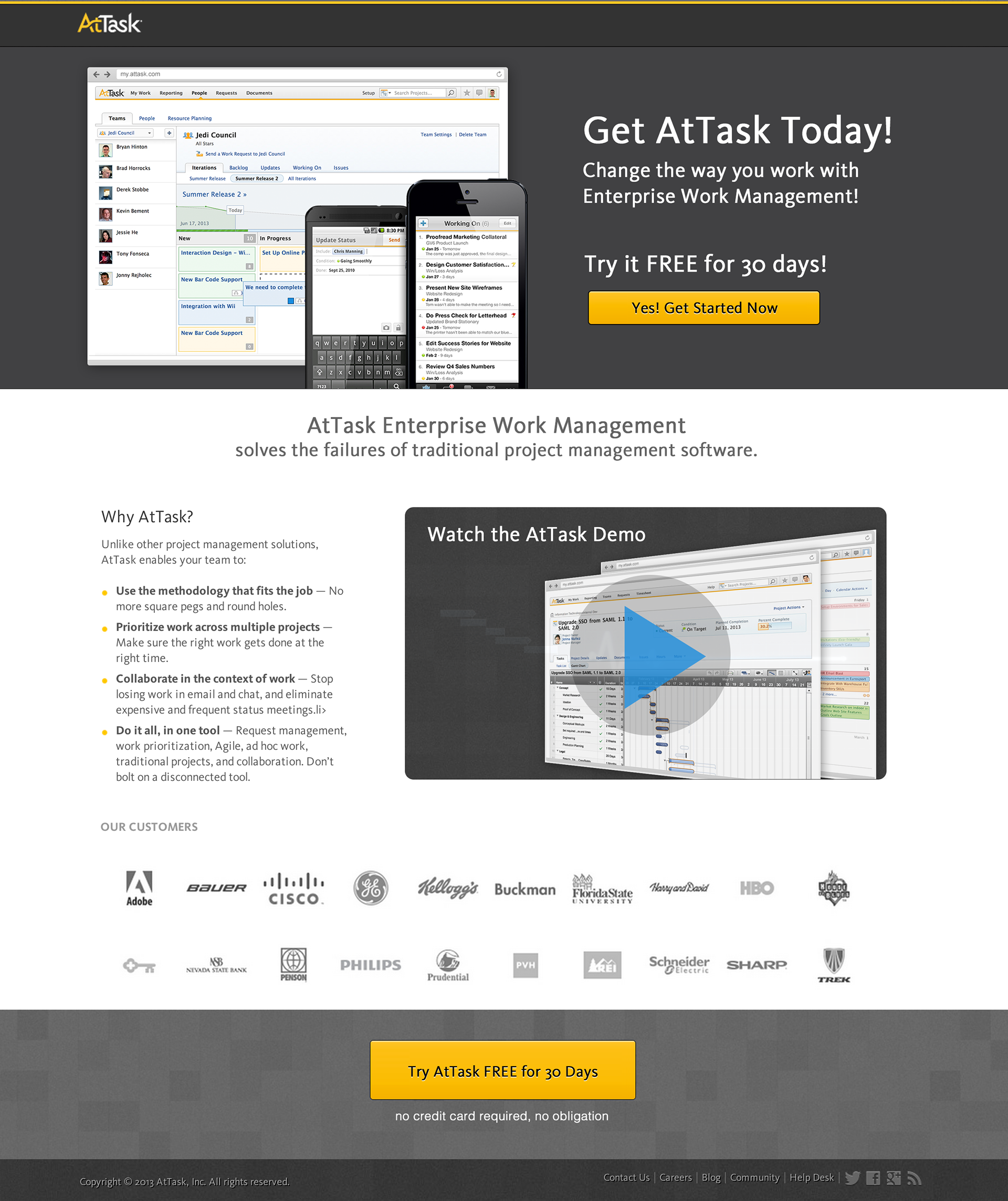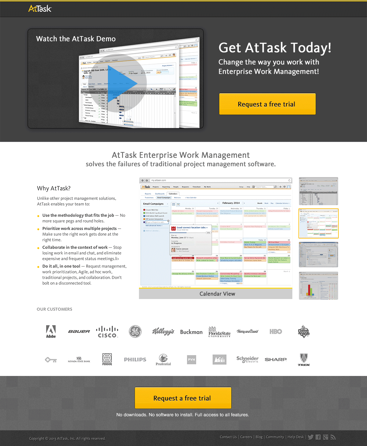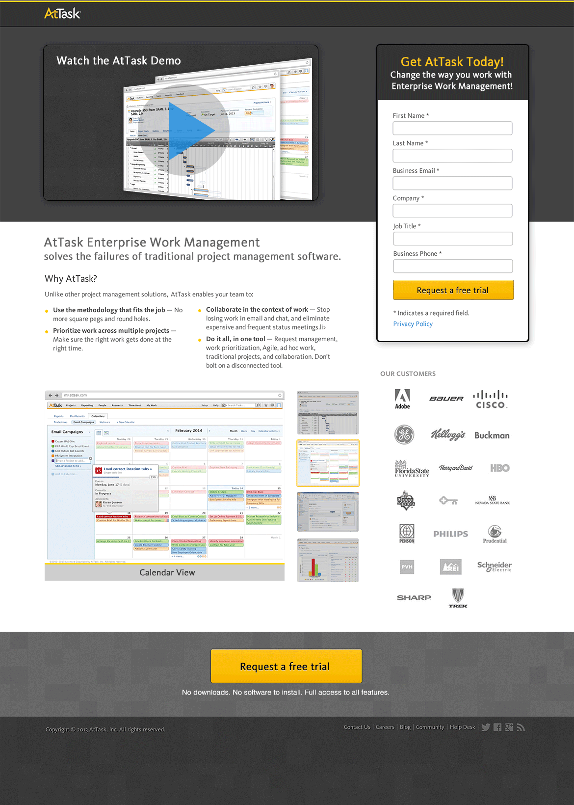 AtTask Landing Page design to download demo of their product