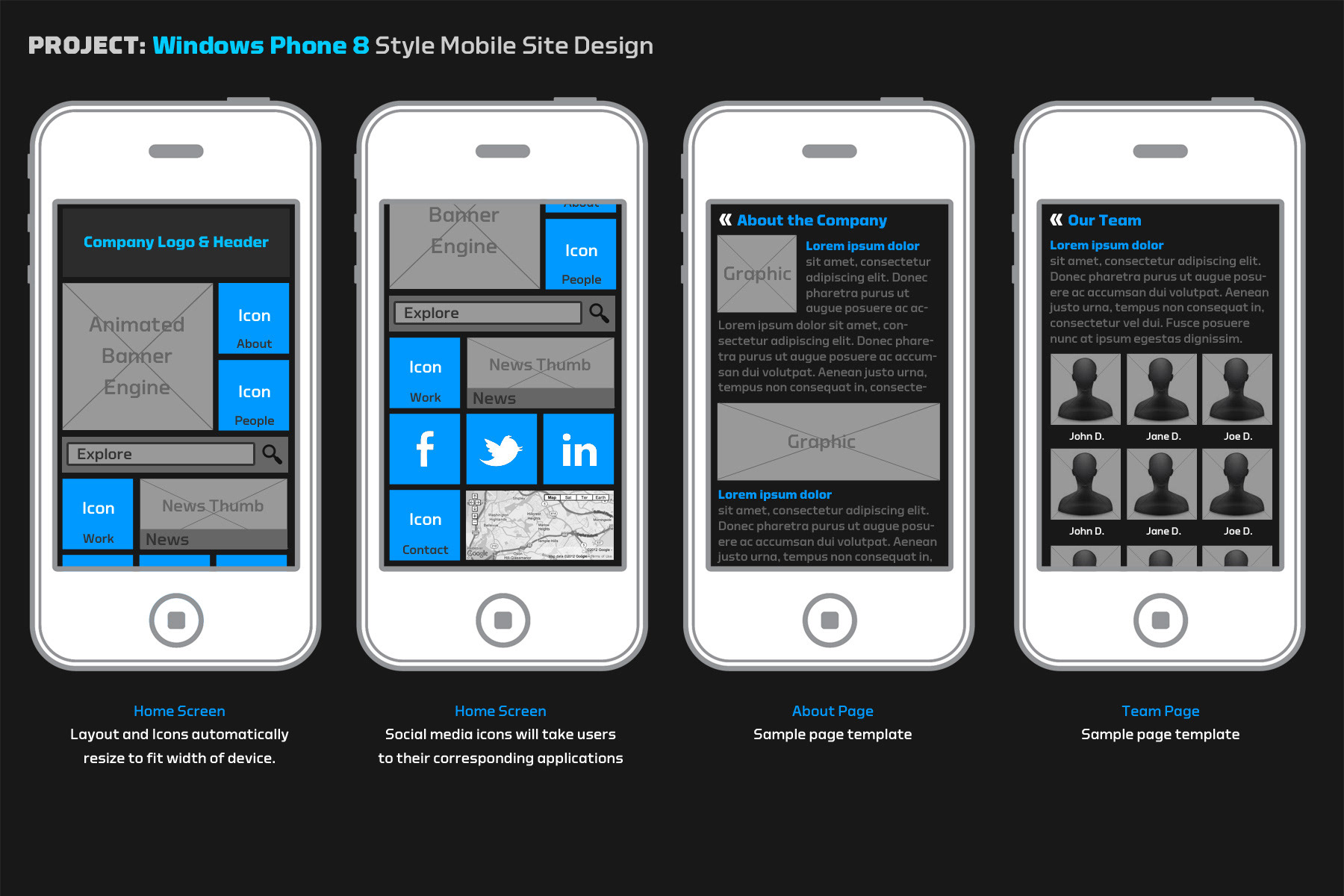 Mobile Application and Mobile Website designs. Mobile Application Wireframes