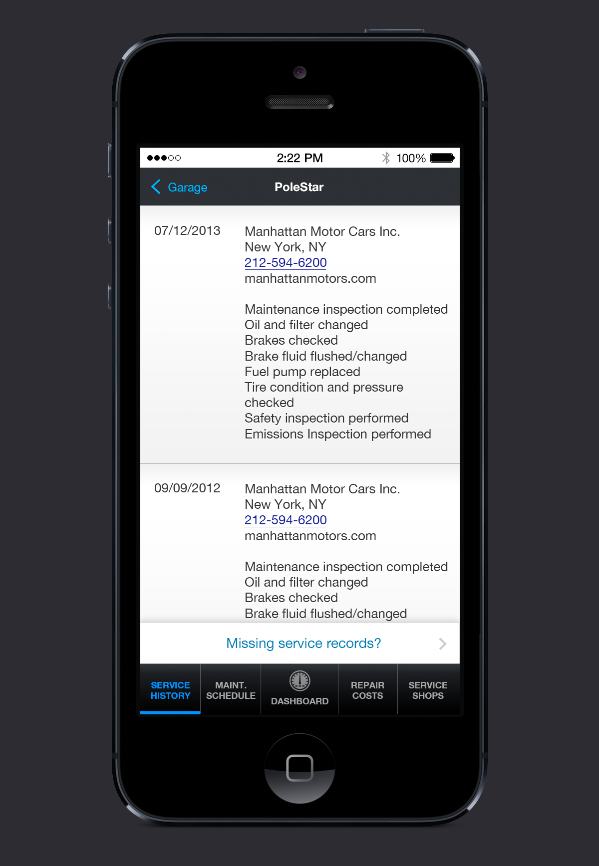UX/UI design concept for CARFAX myCARFAX mobile application on iOS7