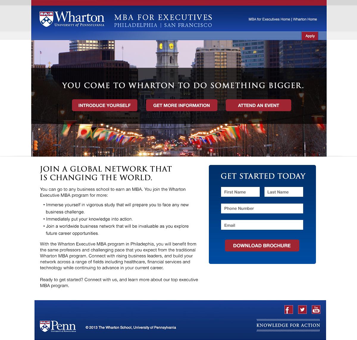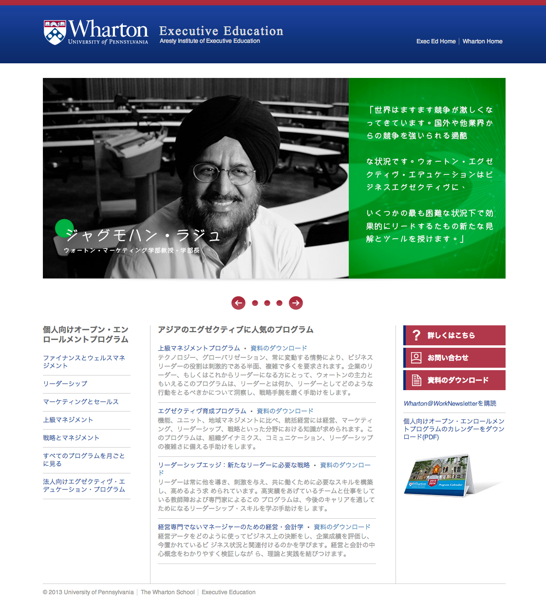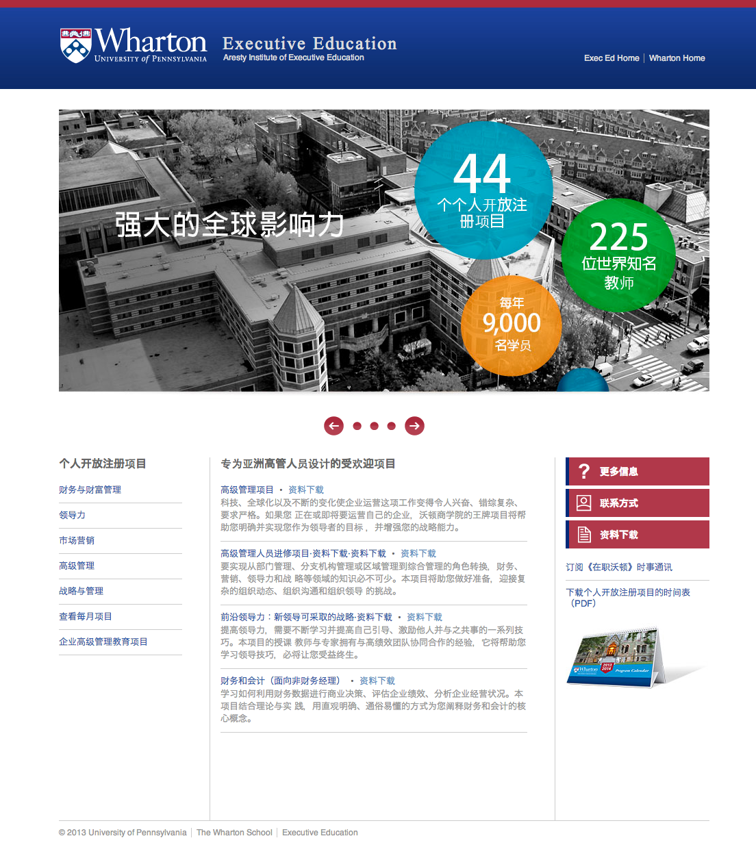 Landing Page designs for The Wharton School of the University of Pennsylvania in English, Japanese, Chinese and Korean. UX Design | HTML | CSS